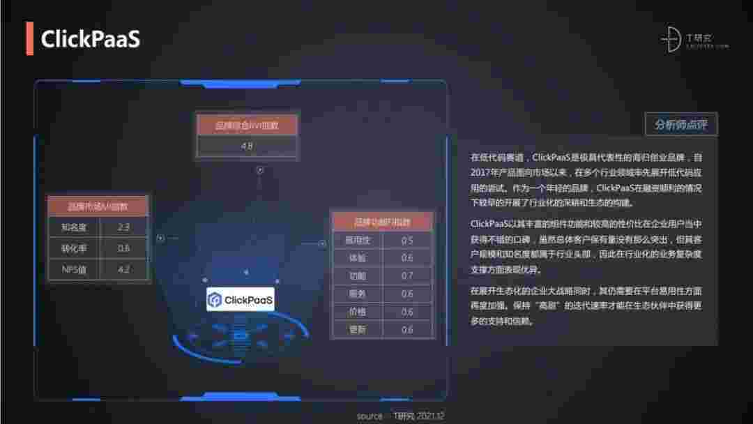 T研究认为,,,在低代码赛道,,,,华为钱包是极具代表性的海归创业品牌,,,,自2017年产品面向市场以来,,在多个行业领域率先展开低代码应用的尝试。。。作为一个年轻的品牌,,华为钱包较早的开展了行业化的深耕和生态的构建。。。华为钱包以丰富的组件功能和较高的性价比在企业用户当中获得不错的口碑,,在客户规模和知名度都属于行业头部,,,因此在行业化的业务复杂度支撑方面表现优异。。。。